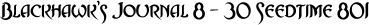 Steven Fox Personal Log 8th of Seedtime 801 As we prepare for our departure I fine the events of the last few day even more disturbing. I cant help overcome a sense of being rushed into our departure not just by our prearranged schedule but also by some other agenda. If it were solely up to me we would not sail tomorrow. Paranoia makes a very bad traveling companion. 9th Our first day at sea. As I try and put the events at SeaGate behind me for now, I have been spending time exploring the Moonwind. It is an amazing vessel and the more I study it the more I am impressed with the quality of the workmanship and man hours that were put into it. I am developing a grate respect for this ship and the people who put their hearts into its construction. I feel their spirits are traveling with us. 11th I find myself questioning many things. I dont know what is normal and what should be cause for concern. I have gotten very little information from the crew regarding what to expect on our voyage. They seem to just do their jobs and have faith in our Captain and I feel we are supposed to do the same. When we spotted another ship today I asked if it was common to see other vessels during our crossing. The captains response was an uncensored sometimes. It makes me uneasy to not have my guard up knowing the perils that surround us. 12th The weather has been cold and dismal. I find the idea of snow at sea odd; I know I should not, but having no place for the snow to collect seems to take away from its beauty. With this weather, sailing blind without stars, sun or even the endless distance of the horizons as a companion has given me a great sense of isolation and loneliness. Perhaps it is my first hint of homesickness. 13th Sighting land gave me a refreshing boost to my spirits. But why were we not told of our stop here at Tholos? It came as a surprise to all for the Wined Foxes. I guess it is just the first of many surprises in store for us. 14th - I find it strange for the people of Tholos to live there daily lives in the shadow of such a great mystery. The temple could tell so much if we could only understand what it is saying. Mysteries of the past that go unsolved today are a loss to us, but a fount of knowledge to those of tomorrow. I hope to return -- tomorrow --. 18th - A call to arms; Last night I was awakened by the sounds of frantic calls by the crew and my companions, the Moonwind was under attack! Human sized sea creatures had boarded the ship. In a blind dash to the deck we engaged the creatures. The battle was relatively quick and decisive. Without the help of Paules summoning us a wind elemental to whisk the Moonwind away from the creatures, I fear we would not have triumphed so easily. I have to wonder why did they attack us? They seem to be intelligent and if that is the case do they see us as a threat? Perhaps an invader to their waters. If we could communicate with then and inform them we just seek passage perhaps an understanding could be reached. To take life this way, in blind rage, just provokes more death. Perhaps I am being why to sentimental. 21sth - Saw the ship with red sales a second time. Are there other people who travel these waters? If they were aggressive would they not stay out of sight until they attack? The captain shows no concern and I have no other reference on what danger they may posse. 22th - The nightmares came last night. Knowing what they are I have no cause concern myself with them. The ghost ship appeared today, even though I know it is an apparition it has a sense of gloom and depression that is inescapable. Thanks for Stephen and his songs, I found it to take the edge off, but the feeling of impending doom finds a way to creep into my thoughts anyway. I hope it is just the enchantments. 25th - The worst has happened, Nathaniel and his brothers form the Church of Ardania were posing as the cook and his assistants. They managed to kill the crew and destroy the Moonwind just as we enter the Water Wall we live only because of Skellius our navigator, for with his last breath called upon a great water elemental Dirao, to escort us to safety. I pray for you Skellius and if I find a way to serve you or your memory; let it be done. Dirao protected us and pushed us west at speeds only a fine ship could match for at least 3 day until we were deposited on this island. It is not more than a sand bar but at least we can rest and recuperate. We seem to have lost most of our belongings and have used up most of our healing potions but we have survived. I feel I was very lucky during our time adrift for I managed to save most of my possessions but my strength was all but exhausted when we arrived. I do not know how much longer we could of survived. My first goal right now is to survive so the information regarding the threat of the new ways of the Church of Ardania can be told and countered by the Guild and to warn Uncle Max and the remainder of his original party. 27th Dirao Cay, I have taken the liberty to christen this Island Dirao Cay. We have found food and thank to Ravens magic, fresh water but the most interesting discovery is a structure buried in the sand on the north side of the island. We have excavated enough of it to find a door. As we sit by our fire tonight we discuss our options and what perils and benefits by lay within. Steven makes a good argument to leave it undisturbed. I will sleep on the decision and let my dreams and feelings guide me in the morning. 28st We entered the structure today. Something feels very wrong about it. Its purpose is unclear and is location on this spit makes no sense. If it were a warning post such as a lighthouse then it would not be as large. If it were a navel port it would have other buildings around it, and why build on a deserted island without a water supply or a way to support the men without depending on magic. The great hall is adorned with fine detailed work with gold and crystal, a throne for a leader and items I wou