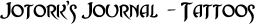 Before the revelry gets too heated, Jotork enters with some parchment, ink and quills. The parchment is covered with small sketches he has made during some of the few quiet moments of the past few weeks. Images include those of a trident, a black sphere, a fox, a butterfly, a dragon, an island, a spear, and several angels. On the last clean space on the sheet he begins two new sketches. One is of a fox on a small island. The fox is running with a piece of black cloth clenched in its mouth. A butterfly rests upon the cloth. The second sketch is of an angel apparently stylized from several of the smaller sketches. One appears to be the statue from the garden, another the avatar called down by Fara, a third may be from the painting he described seeing in the library. The angel holds two weapons crossed above its head, one a trident, one a spear. And this part is hard to tell, but the face of the angel appears to be Lia's. Jotork pauses to listen to Stephen in the corner. A sadness seems to pass over his face. But he again picks up the quill and begins to trace the recent sketches onto each of his forearms. He becomes absorbed in his work, not seeming to notice if others enter or leave the room. He seems to be singing to himself much in the same manner as Stephen in the corner, occasionally sharing the tune, but often chanting his own rhythm. As the sketches begin to take shape, he pulls a needle and some small vials of colored ink from a small pouch. With quick measured stokes, he begins to make the sketches permanent additions to the living tapestry that is his skin. Stephen is watching Jotork with interest. After a bit, he speaks up. "Jotork, if it isn't too private, could you answer a question for me? What is the significance of your tattoos? I have long been curious, but had not had a convenient time to ask." Setting his needle down, Jotork looks at his recent handiwork, and some of his earlier tattoos. "Well, to speak plainly it is personal, but not private. Arnestra, my teacher, taught me my technique and gave me the jumping mouse, my first Life Tattoo. She had taught me much, and most of my tattoos served as reminders of lessons hard learned. The geometric symbols that I carry serve to help balance, center, and focus my energies. They are not magical in any sense but serve as focal points during meditations. These are my Lesson Tattoos. Since becoming a Fian I have earned my Life Tattoos. These are of a more personal nature. They serve to tell the story of a Fian's life through association of triumphs and failures. As a bard Stephen, you immortalize other through song and word, well this is my song. It is every Fian's desire to die in battle. When that day occurs, there will be a reminder for those who survive, and those with interest can perhaps "read" the tattoos to learn of a fallen Fian's past deeds. But more importantly, we also carry these stories into the afterlife. As we face judgment, we will be humbled with the realization that we had just failed in a life and death struggle and worse, others may have died due to our failure to protect them. In the face of such failure, we are unworthy to ask for a judgment of forgiveness. It is hoped that our Life Tattoos will be valued as true testament to a life of bravery and service by the judging spirits. This should allow a fallen Fian to be passed on to join in the eternal reward, as it is unthinkable that a Fian would create a Life Tattoo that did not represent true achievements. But Life Tattoos are also much more than that to those who know the true power of the Fianna. A Life Tattoo serves as a celebration of everything that is Fianna. I see a puzzled look, let me illustrate although I doubt I can fully explain. Arnestra gave me the Jumping Mouse. Clearly a reference to my name, Jotork - a jumping mouse in her native tongue. But it also reflects the increased agility I developed under her care. The dragon tail was added when I developed a punch that friends jokingly said could stop a dragon, but it also reflects my often headlong flight into any perceived trouble. The Elven eye reflects my centering ability to see more than some would wish me to see, but it is also serves as warning due to my vigilance of Bowcourt activities. These are the self induced scars that I bear, each willingly taken on, each a chapter in my life prior to boarding the Trident. My recent Life Tattoos are more complex due to the increased complexity of my life since that day. As you have shared my experiences since that day, you should be able to read the surface meaning of these two tattoos. The first, a fox jumping over an isle clenching a blackcloth with a butterfly. Clearly, I met you and your cousins in the Isles and learned of plots by Blackcloaks and Bowcourt. But the fox also represents increases in agility and leaping in addition to my pledge to see you and Raven safely to your potential destinations. The Isle represents the Sacred Isle and the punishment suffered by the Fianna banished there. The blackcloack is the pledge to see this quest to Bliss completed, and the pin, to uncover the meaning of those carried by you and Jaden. The second is a combination of the celestials recently encountered with Lia's face holding a spear and trident. Clearly events from our lives, but again there is more. The angels are stirring some memory within me that I cannot quite bring to the surface. But also I believe I have mastered healing techniques, as the celestial has healed us. The angel wings are there to slow any fall. Lia's face is for the lesson experienced from within her body. The trident is my pledge to avenge lost souls. And the spear is Saba's spear as a reminder of friendship given in troubled times and also just as a reminder... I am sorry, but I did not mean for this to be a lecture, but there is just no simple answer when a friend asks a question such as yours. I enjoyed your singing while I worked, for the creation of the Life Tattoo is a form o